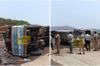 रत्नागिरी – नागपूर महामार्गवरील मुर्शी जवळ डिझेल टँकर पलटी झाल्याने डिझेल गेले वाहून