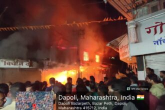 दापोली बाजारपेठेत भीषण आग; पाच दुकाने जळून खाक, लाखो रुपयांचे नुकसान