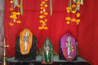 संगमेश्वर :संगमेश्वर तालुक्यातील कोंड-असुर्डे येथील जांभुळवाडी गावात नवरात्रोत्सवानिमित्त उत्साहाचे वातावरण आहे. महालक्ष्मी जाखमाता पावणाई देवीच्या नवरात्र उत्सवासाठी गावकरी मोठ्या संख्येने सहभागी होत असून पारंपरिक पद्धतीने देवीची स्थापना करण्यात आली आहे.