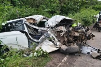 ब्रेकिंग: करबुडे येथे कार- डंपरच्या भीषण अपघातात चालक जखमी
