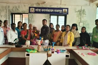 स्वच्छता ही सेवा या उपक्रमांतर्गत टाकाऊ वस्तू पासून तयार केलेल्या टिकाऊ वस्तूंचे प्रदर्शन लांजा नगरपंचायतीच्या सभागृहात सोमवारी २९ सप्टेंबर रोजी सकाळी ठेवण्यात आले होते. यावेळी मुख्याधिकारी अभिजित कुंभार हे उपस्थित महिलांशी संवाद साधताना बोलत होते.