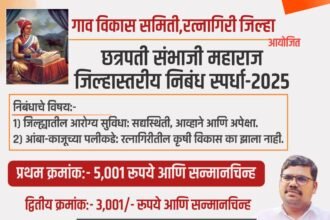 रत्नागिरी: जिल्ह्यातील तरुण-तरुणींना स्थानिक प्रश्नांवर विचार करण्यास आणि आपल्या लेखणीतून ते मांडण्यासाठी हक्काचे व्यासपीठ उपलब्ध करून देण्याच्या उद्देशाने ‘गाव विकास समिती, रत्नागिरी जिल्हा’ यांच्या वतीने दरवर्षी ‘छत्रपती संभाजी महाराज जिल्हास्तरीय निबंध स्पर्धा आयोजित करण्यात येते.यावर्षी स्पर्धेचे ७ वे वर्ष असून या स्पर्धेसाठी निबंध स्वीकारण्याची अंतिम तारीख १० नोव्हेंबर २०२५ आहे.