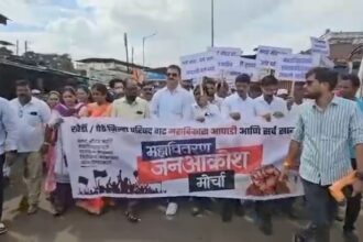 मोर्चा खेर्डी महावितरण कार्यालया समोर येताच पुन्हा जोरदार घोषणाबाजी करण्यात आली.तसेच महाविकास आघाडीच्या शिष्टमंडळाने महावितरण अधिकाऱ्यांची भेट घेऊन आपल्या मागण्याचे निवेदन देत प्रीपेड मीटरला तीव्र विरोध दर्शवला.यापुढे एकही प्रीपेड मीटर बसवता कामा नये,तसेच जे प्रीपेड मीटर जबरदस्तीने लावण्यात आले आहेत ते तात्काळ काढण्यात यावेत,कोणत्याही ठिकाणी जबरदस्ती करून आणि बंद असलेल्या घरांना मीटर बसवले गेले तर महाविकास आघाडी ते सहन करणार नाही.असा स्पष्ट इशाराच यावेळी देण्यात आला.