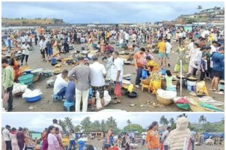दापोली – दिवाळी सुट्टी आणि पाडव्याच्या मुहूर्तावर दापोली तालुक्यातील किनारपट्टीवर पर्यटकांची अक्षरशः झुंबड उडाली आहे. विशेषतः हर्णे बंदरात गेल्या तीन दिवसांपासून सकाळी व संध्याकाळी पर्यटकांची रेकॉर्डब्रेक गर्दी पाहायला मिळत असून आज (ता.२५) सकाळी तर बंदर जत्रेसारखे गजबजून गेले होते. पर्यटकांच्या मासळी खरेदीतून दररोज लाखोंची उलाढाल होत असून मच्छीमार महिलांना चांगला फायदा मिळत आहे; असे येथील मच्छिमारांनी सांगितले.