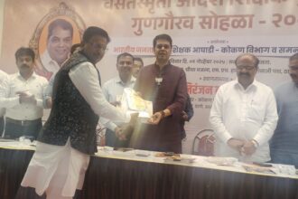 चिपळूण : परशुराम एज्युकेशन सोसायटी, चिपळूण संचालित मोरेश्वर आत्माराम आगवेकर माध्यमिक विद्यालय आणि सी. ए. वसंतराव लाड कला, वाणिज्य व विज्ञान कनिष्ठ महाविद्यालय, अलोरे चे मुख्याध्यापक श्री शरद नथू सोळुंके यांना यावर्षीचा ‘वसंत स्मृती आदर्श शिक्षक पुरस्कार’ जाहीर झाला आहे. त्यांच्या उल्लेखनीय शैक्षणिक कार्य, विद्यार्थीकेंद्रित उपक्रम, नवोपक्रमशील नेतृत्व आणि सर्वांगीण गुणवत्तावृद्धीतील योगदानाबद्दल हा सन्मान प्रदान करण्यात आला.