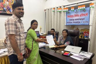 देवरुख:- देवरुख नगरपंचायत निवडणुकीसाठी राजकीय वातावरण तापले असतानाच, गाव विकास समिती आणि आम आदमी पार्टी युतीच्या नगराध्यक्षपदाच्या उमेदवार सौ. दीक्षा खंडागळे यांनी आज आपला उमेदवारी अर्ज दाखल केला. युतीच्या माध्यमातून दिक्षा खंडागळे यांनी हा अर्ज दाखल केल्याने या निवडणुकीत गाव विकास समिती आणि आपची ताकद एकत्रितपणे पाहायला मिळणार आहे.