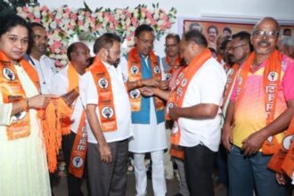 रत्नागिरी : भाजपचे रत्नागिरी ओबीसी शहराध्यक्ष अमित विलणकर यांनी आपल्या तब्बल १५० निष्ठावान कार्यकर्त्यांसह शिवसेना उद्धव बाळासाहेब ठाकरे पक्षात जाहीर प्रवेश करत मनगटावर शिवबंधन बांधले. या मोठ्या प्रवेशामुळे शहरातील राजकीय समीकरणांना नवी दिशा मिळाली असून शिवसेनेच्या संघटनात्मक बळात भर पडली आहे.