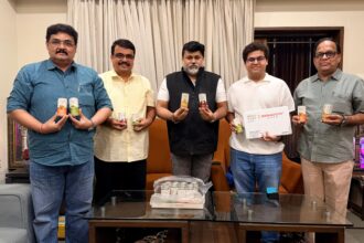 रत्नागिरी :- तालुक्यातील पावस येथील प्रसिद्ध आंबा बागायतदार देसाई बंधू आंबेवाले यांनी मँगो ड्रिंक, रॉ मँगो ड्रिंक आणि कोकम ड्रिंक ही नवीन कोकणी उत्पादने बाजारपेठेत आणली असून, या नव्या उत्पादनाचा प्रारंभ रत्नागिरीचे पालकमंत्री ना. डॉ. उदय सामंत यांच्या हस्ते करण्यात आला. देसाई बंधू आंबेवाले यांनी तयार केलेली ही उत्पादने अमेरिकेत निर्यात केली जाणार आहेत. तसेच देशातील बाजारपेठेत १ एप्रिल पासून उपलब्ध होणार आहेत.
